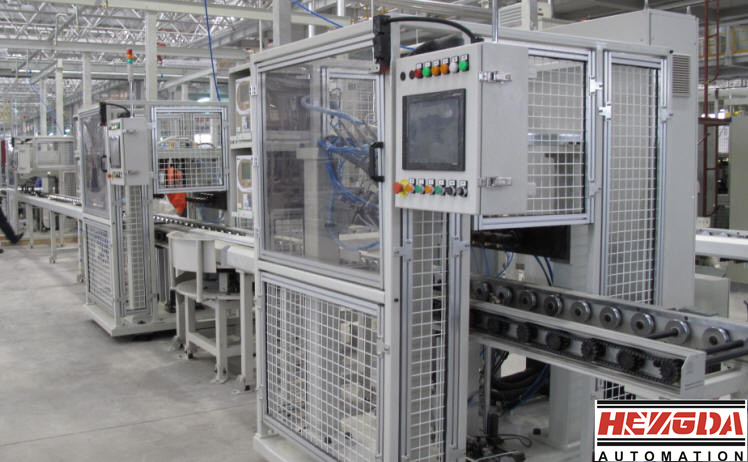 隨著汽車工業(yè)的發(fā)展,發(fā)動機(jī)裝配線 的自動化程度越來越高,發(fā)動機(jī)裝配線主要由活塞連桿分裝線、缸蓋分裝線、總成裝配線組成。具體的設(shè)備大致包括:摩擦輸送線、托盤、打號機(jī)、激光標(biāo)簽打印機(jī)、翻轉(zhuǎn)機(jī)、缸孔噴油裝置、活塞插入輔助裝置、曲軸分組號攝像識別裝置、主軸瓦選配裝置、氣門插入翻轉(zhuǎn)臺、氣門拍打裝置、活塞銷壓裝機(jī)、潤滑油噴嘴壓裝及檢測機(jī)、氣門油封壓裝機(jī)、缸蓋水管接頭壓裝機(jī)、火花塞導(dǎo)管壓裝機(jī)、主軸承蓋螺栓擰緊機(jī)、連桿螺栓擰緊機(jī)、缸蓋螺栓擰緊機(jī)、凸輪軸蓋螺栓擰緊機(jī)、正時鏈蓋擰緊機(jī)、油底殼擰緊機(jī)、曲軸皮帶輪螺栓擰緊機(jī)、主軸承蓋螺栓松開機(jī)、連桿螺栓旋松機(jī)、總線控制系統(tǒng)與信息管理系統(tǒng)、裝配線工具、量檢具、通用料架、智能料架、冷試臺架、機(jī)械挺柱選配裝置、氣門鎖夾壓裝機(jī)、涂膠及機(jī)油加注設(shè)備、泄漏檢測設(shè)備、曲軸端隙及扭矩測量裝置、曲軸回轉(zhuǎn)力矩檢測+油道試漏、MPI試漏機(jī)、缸蓋泄漏試驗機(jī)、長缸油路試漏機(jī)、長缸水路試漏機(jī)。