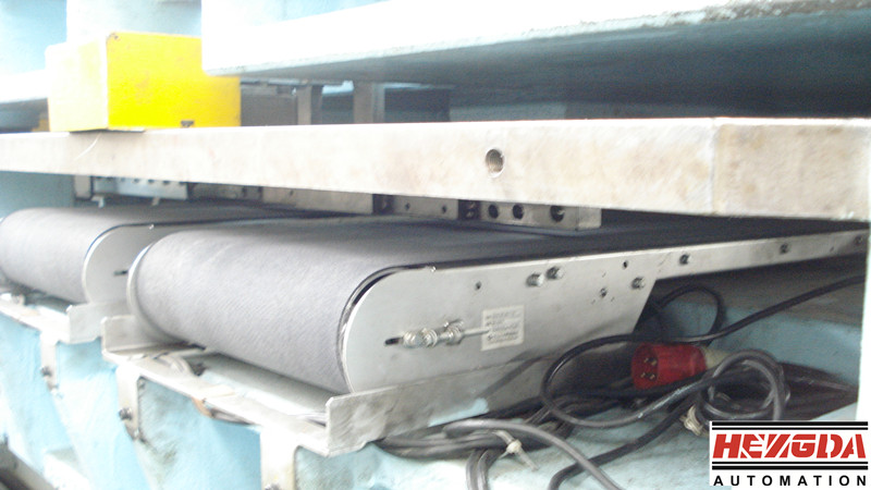 一種開(kāi)卷落料模具的板料輸送機(jī)構(gòu),包括:推力擺臂、軸銷、推力擺臂座和氣缸滑動(dòng)組件;所述氣缸滑動(dòng)組件水平設(shè)置,推力擺臂座固定在氣缸滑動(dòng)組件的可動(dòng)部分上;所述推力擺臂通過(guò)水平設(shè)置的所述軸銷,可轉(zhuǎn)動(dòng)的設(shè)置在推力擺臂座上,且軸銷的軸線與氣缸滑動(dòng)組件的運(yùn)動(dòng)方向垂直。采用了本實(shí)用新型技術(shù)方案的開(kāi)卷落料模具的板料輸送機(jī)構(gòu),由于采用氣缸滑動(dòng)組件驅(qū)動(dòng),相比現(xiàn)有技術(shù)中采用電機(jī)驅(qū)動(dòng)或者電磁驅(qū)動(dòng)的板料輸送機(jī)構(gòu),具有結(jié)構(gòu)簡(jiǎn)單、制造工藝簡(jiǎn)單的優(yōu)點(diǎn),因而能節(jié)省投資;此外還具有使用簡(jiǎn)便、工作可靠、使用壽命長(zhǎng)、維護(hù)成本低等優(yōu)點(diǎn),因而便于推廣,實(shí)用性和通用性均較強(qiáng)。